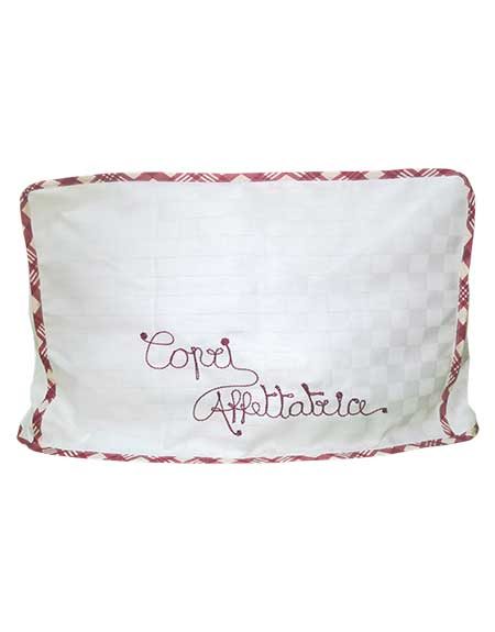 -Copriforno in stoffa impreziosito da un inserto in tela Aida della migliore qualità.