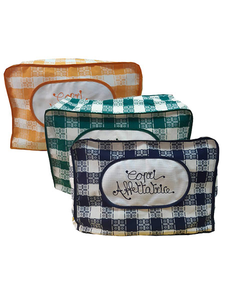 Il copri affettatrice è un prodotto completamente realizzato a mano, in tessuto artigianale abruzzese, 100% cotone, garanzia di qualità.