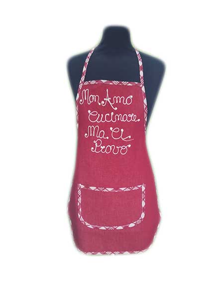 Per le mamme sempre di fretta che non hanno tempo di cambiarsi prima di mettersi ai fornelli, per le nonne sempre indaffarate ma che non vogliono rinunciare ad un tocco di classe e infine per le ragazze che vogliono avvicinarsi alla cucina… Perché, si sa, la cucina è arte e il giusto outfit è la prima ispirazione! A partire dal tuo ordine saremo noi a seguire il prodotto in ogni sua trasformazione fino alla spedizione: -Sceglieremo il tipo di tessuto adatto alla tua richiesta; -Procederemo al taglio utilizzando un modello realizzato da noi; -Andremo a rifinire il grembiule con la bordatura da te selezionata; -Completeremo il lavoro ricamando artigianalmente la dedica richiesta!