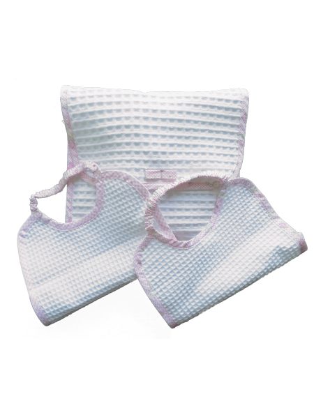Set asilo personalizzato realizzato e ricamato a mano in 100% cotone a nido d’ ape,comodamente lavabile in lavatrice, disponibile in due varianti: