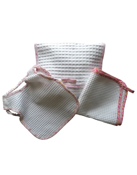 Abruzzo Ricami ha pensato a voi proponendovi questo set asilo personalizzato che coniuga la morbidezza del cotone per la pelle delicata del vostro bambino alla trama del migliore nido d’ ape presente sul mercato per un’ assorbenza estrema e una resistenza oltre ogni aspettativa!