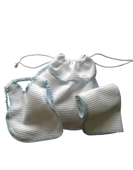 Abruzzo Ricami ha pensato a voi proponendovi questo set asilo personalizzato che coniuga la morbidezza del cotone per la pelle delicata del vostro bambino alla trama del migliore nido d’ ape presente sul mercato per un’ assorbenza estrema e una resistenza oltre ogni aspettativa!