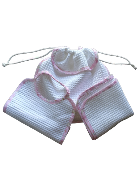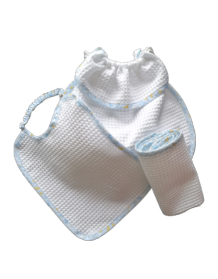 Abruzzo Ricami ha pensato a voi proponendovi questo set asilo personalizzato che coniuga la morbidezza del cotone per la pelle delicata del vostro bambino alla trama del migliore nido d’ ape presente sul mercato per un’ assorbenza estrema e una resistenza oltre ogni aspettativa!